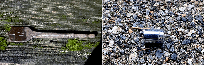 A drill bit, a bit rusty, or is it a rusty bit. But you get a bit of the idea, right? Also, another lost socket for our socket jar.