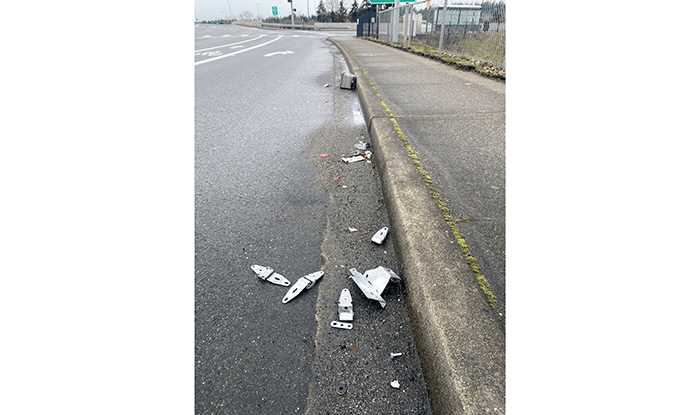 Approaching the northbound onramp to I-405, someone dropped a box of hinges and other miscellaneous garage door parts. We counted eighteen hinges, which is seriously unhinged.
