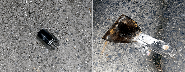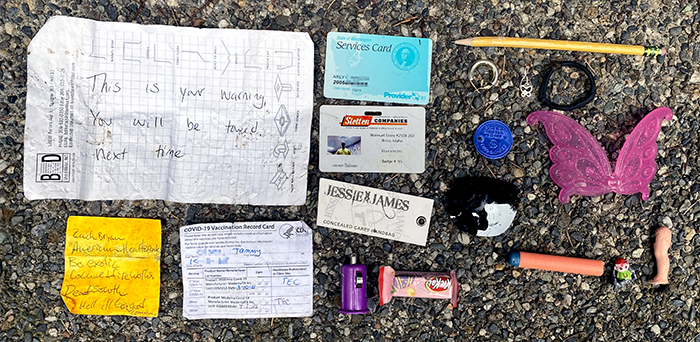 On Woodinville Drive near the homeless campers, we picked up a dog-poop bag with toilet paper in it.