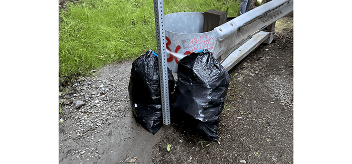 We found these hidden under the freeway on both sides of the road. Whoever left them took pains to place them out of sight, but we found them, unfortunately. But why bother to hide them? Just toss them like everyone else. Anyway, they are relatively heavy so we will contact the city for pickup. The bags, not us.