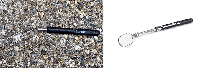 A Titan inspection mirror, but without the mirror. If the mirror was still attached, it would be worth about $14 on Amazon. Now? About 14 cents.