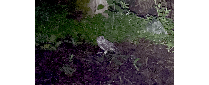 On our way down the hill to Riverside drive, we came upon an owl on the ground.