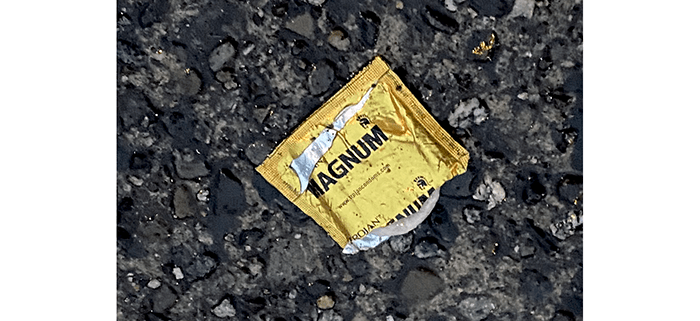 This was probably tossed from the freeway above. So, we liken this to dog walkers who pick up their dog’s poop then toss the poop bag. These people keep their cigarette butts in a bottle of water then toss the bottle. And yes, there are some cigarette smoking dog owners that do both. What could be worse?