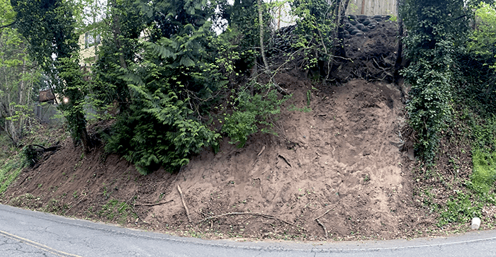 On the way up Norway Hill, we saw that someone cleared the vines off a very steep bank exposing a lot of tree roots.