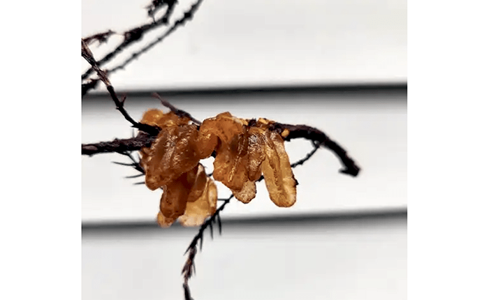 Not on our walk, but on the NextDoor App, someone posted a picture asking what this stuff is on his shrub.