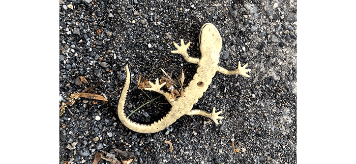 Okay, we didn’t find any real roadkill, but we did find this lizard. No, we didn’t shoot it, the hole is probably part of the molding process. Or maybe someone else shot it, but it doesn’t matter. The Judges won’t let us count it as roadkill.