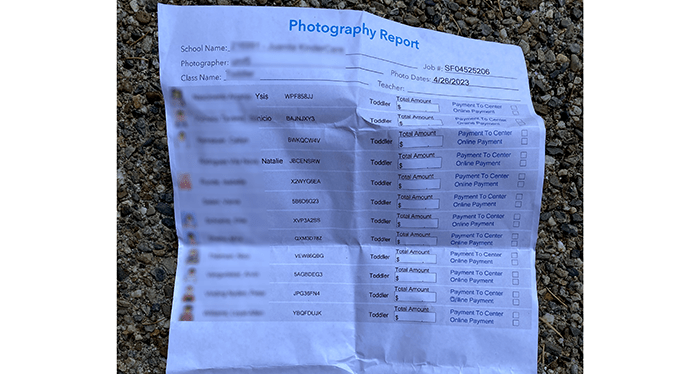 It has the pictures and names of all the kids in one of the classes. This is probably not something they should be so careless with.