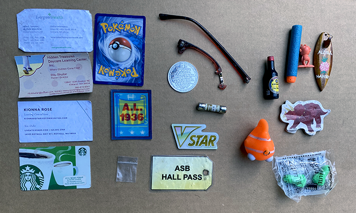 When we got home, we checked the pack for any identification, but there was none. But there was a small trove of random items.