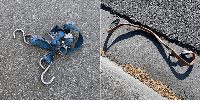 Well, sort of. The winch on the left had been run over multiple times and was recycle matter. The bungee cord on the right was bit beat up, but still quite serviceable.