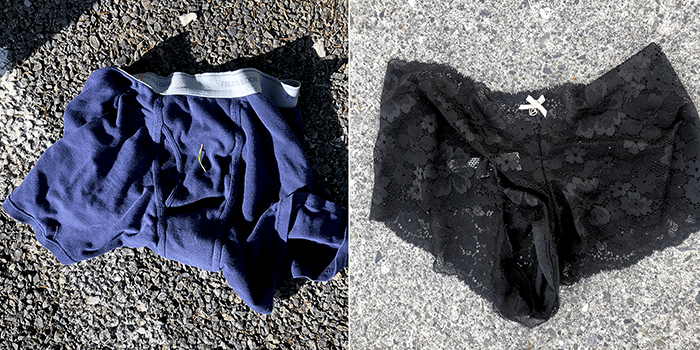 So, our assumption is that there were the three pairs of socks, this used pair and the two new pair that the person acquired. There was also a bunch of food wrappers and drug leavings in the area. This three pair was probably not our lucky number.