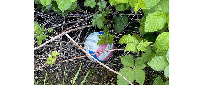 But this soccer ball was at the bottom of the Brickyard Road hill, so it probably came down from there. “Dang, go get the ball, Fred.” “No way, it’s your turn, I got it last time…” Anyway, the ball was losing air. It did land in a batch of thorns after all.