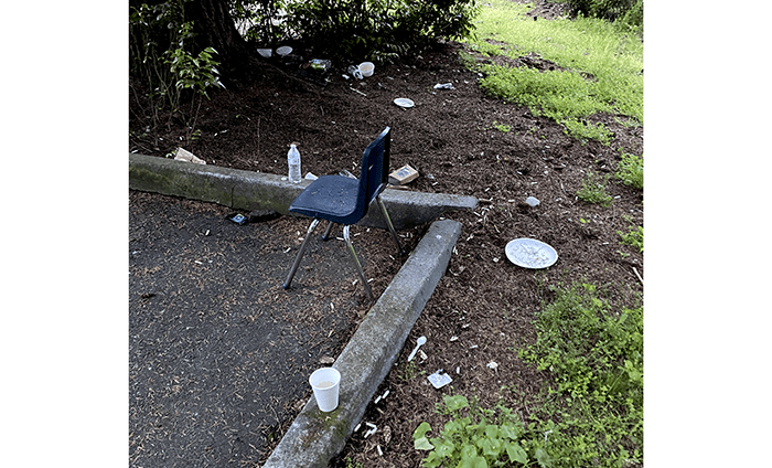 At the KinderCare, there is a mess in the parking lot, obviously left by an employee. Do you want someone like this teaching your kid Littering 101?