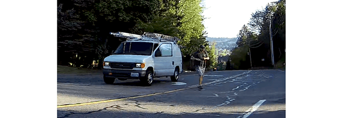 As we were on our way up Brickyard Road, a van pulled into the center lane and the driver jogged toward us.