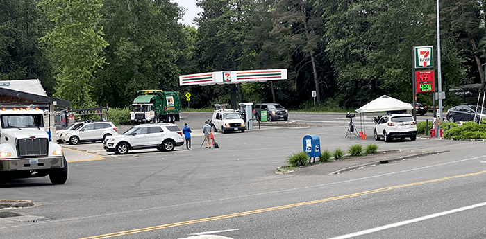 We noticed what looked like a survey crew in the parking lot, but after some discussion, it looked like cameras. So we came to the conclusion that they were getting ready to shoot a commercial or something. However, we later found out the 7Eleven had earlier been held up and this was part of the news crew to film a report. In the report we heard on a news source, four local 7Eleven stores were robbed in the early morning within three hours by two young men and the police officers think they may be connected. Duh, ya think?