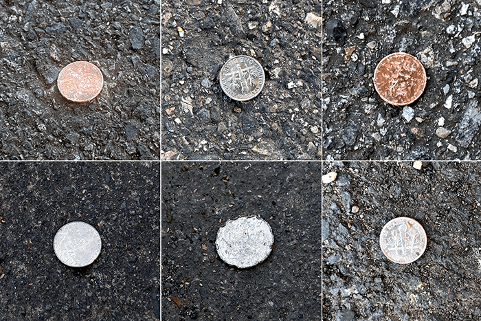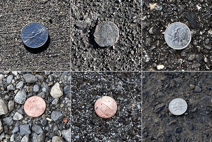 A quarter, two dimes, a nickel and two pennies, all found spread along our route. Keep it coming.
