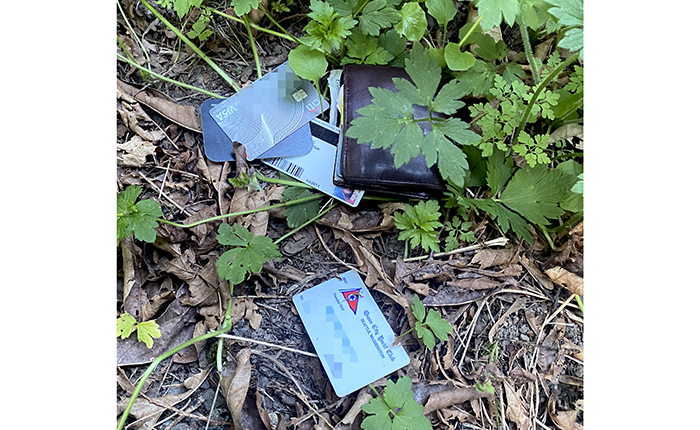 [Update: The owner of the wallet texted us again on Saturday: “Thanks so much for returning my wallet to me. Quite funny to me. I lost that wallet over 2 years ago. I don’t know where it was hiding, somebody must have had it somewhere. I have since lost two other wallets that were black. I don’t know. Keep an eye out. thanks again.” We told him we would keep an eye out for the other two wallets.]