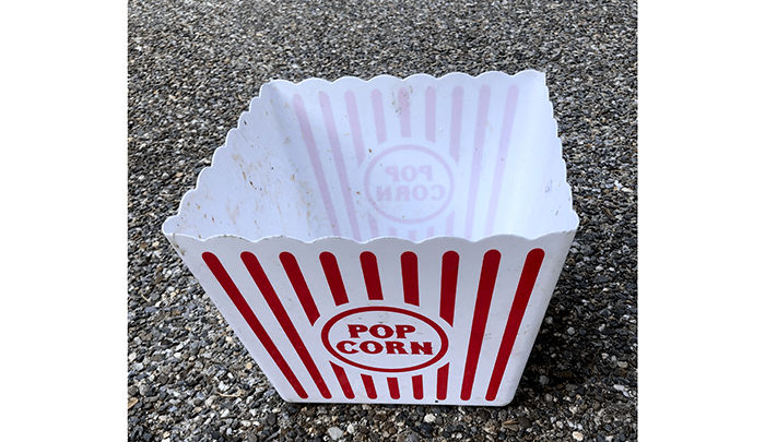 At the park-and-ride, someone had a large bucket of popcorn, or at least the plastic bucket.