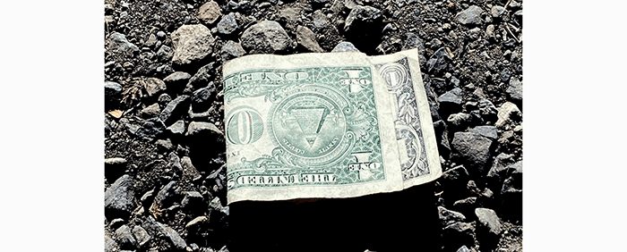 On today’s walk, we removed three roadkill, a rat, a rabbit, and a bird. But we also found money.