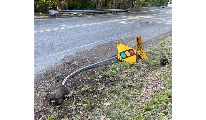someone ran over a sign. We didn’t find any car parts, but it had to hurt.