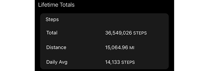 Our lifetime distance surpassed 15,000 miles (24,000 km). By lifetime it means since we started using the watches in 2016. That would be enough to go around the world if we walked along 70th parallel. We have a ways to go to do it on the equator.