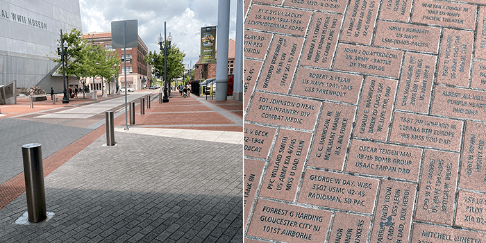 During some free time on Sunday afternoon, the two of us visited the National World War II Museum. The surface outside and inside the museum are paved with thousands of bricks engraved with the names of some of the service members who gave their life for their country. It was very sobering.