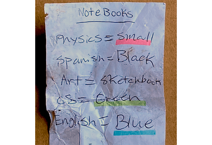 Wouldn’t you want a big one for physics for doing experiments like with gravity? The Art should be a dead giveaway. Here’s an idea. Why not write the subject on each notebook? Or do you need to finish English first?
