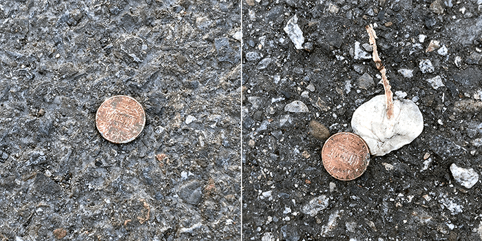 Chuck found one penny on Riverside Drive and Janet found one on Brickyard Road. Janet’s was stuck in a blob of gum. She claims she tried to remove the gum too but failed. Right, no problem getting the penny, but the gum? No way.