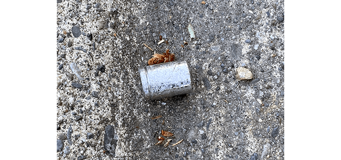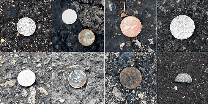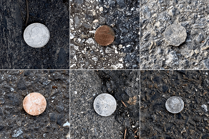 The three dimes found together and two pennies. The penny on the right was embedded in the tar of the park-and-ride and took a bit to remove, but that makes thirty-two cents today. But that’s not all.