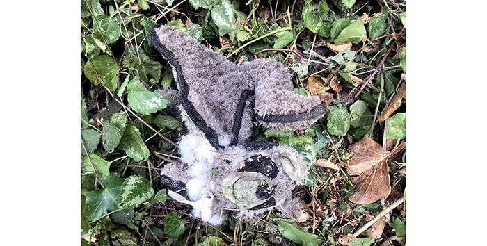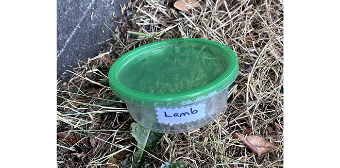 It was a grocery meat tray, and it was about half full of chicken. And it reeked. It was not something that was going into our garbage can and we couldn’t put it in the bus stop trash can.