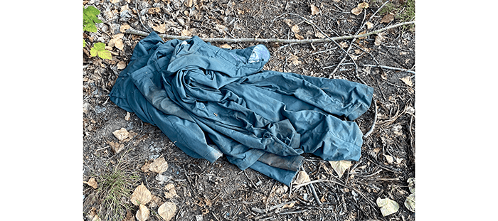 On 116th Avenue, someone tossed four pairs of pants.