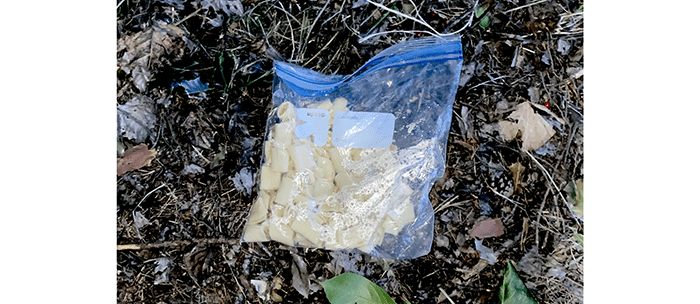 Someone tossed a plastic bag of cooked macaroni.