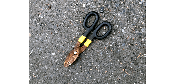 A pair of tin snips that are very rusty but we’re working on that. With a little WD-40 and some oil, it’ll be as good as new.
