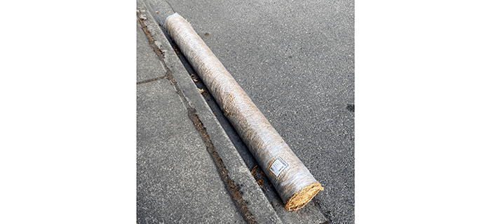 It looked like a roll of hay, but after some research, it’s a biodegradable erosion control blanket, eight feet by 112 feet and costs $180 per roll. Minimum order, 25 rolls in case you’re interested.