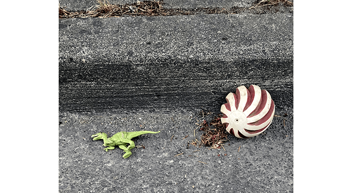 We tossed about 15 toys and parts back over the fence into the playground including three balls and a T-Rex.