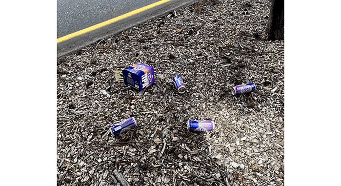 In the middle divider of Juanita-Woodinville Way, were the remnants of an average kegger without the kegs.
