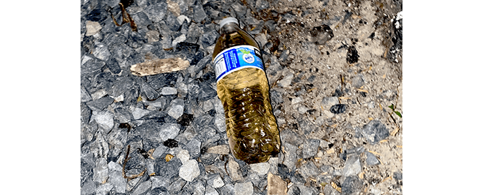 On our way down the hill to Riverside Drive we picked up several cans and another urine bottle.