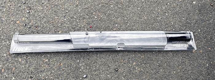 Black Magic Premium Truck Window Tint Film, eighteen dollars at Walmart. The package is opened but it is hard to tell if any has been used. We hauled it home and put it in our Goodwill pile.