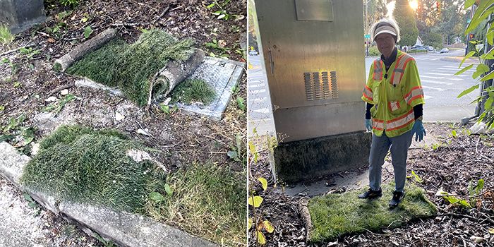 At the 7Eleven corner, some poor sod lost some rolls of grass.
