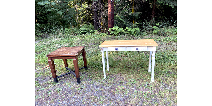 Well, they are free, but someone dumped these by the side of the road. We set them upright and found they are made of solid wood, not like most furniture today. Perhaps someone will pick them up. If not, we will notify the city.