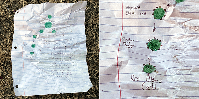 They had us until the last step with the red blood cell. We’d give the student a solid “C+” for effort, but really, a green red blood cell?