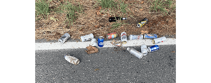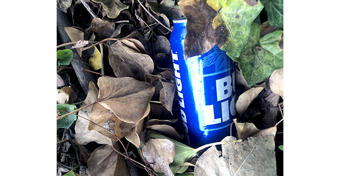 Fourteen cans and a bottle. In the past, Bud Light cans have dominated this location but recently it seems to be all hands on deck. Or down the hill. And it seems to get harder to clean up the bank as we seem to go downhill.