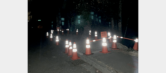 A tree root caused the sidewalk on 112th Ave NE to buckle and is being fixed.