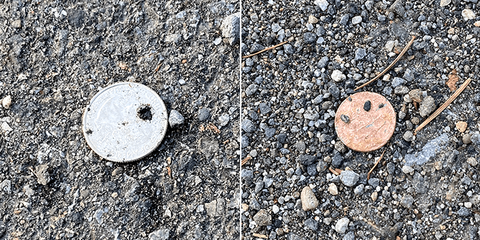 A quarter on the freeway northbound on-ramp and a penny on the southbound off-ramp. We have two more days, but so far, this is shaping up to be a meager take for a two-week period.