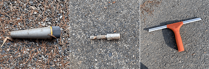 A spray nozzle of some type, a drill socket, and an HDX squeegee. All were in good condition. Now if we only knew what the nozzle is for. It does not fit a garden hose and Google Lens failed to find it. Yet another TrashWalking mystery.