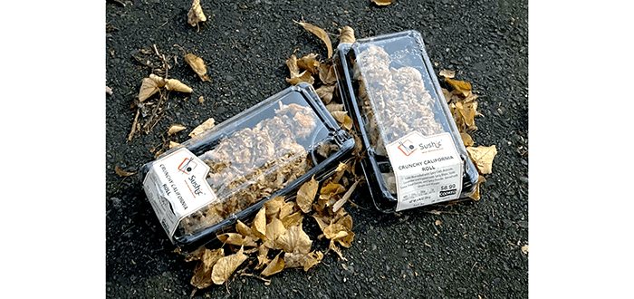 Someone left us two packages of Crunchy California Rolls at the park-and-ride.