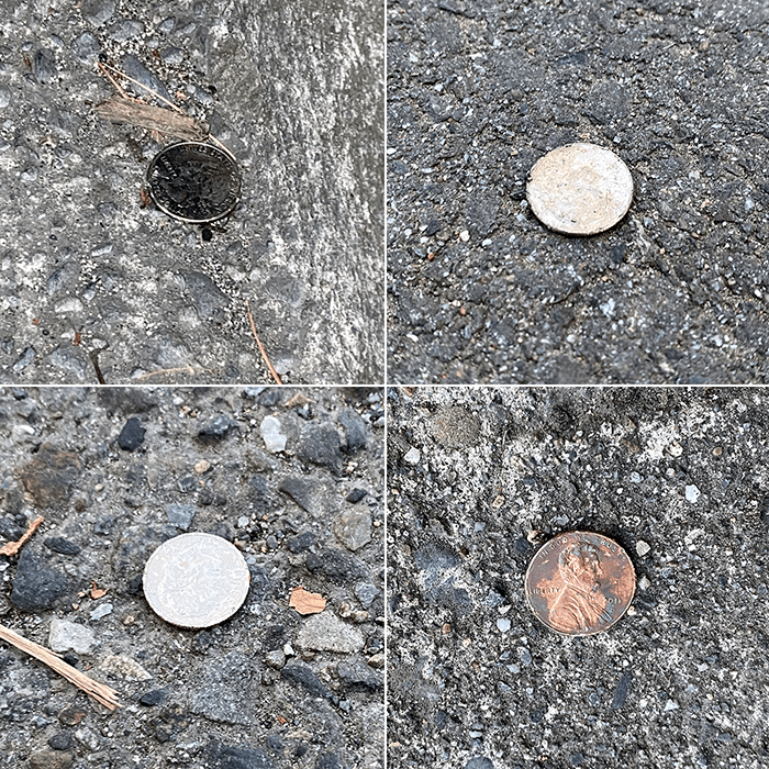 A quarter and a penny to start the week off on the right foot. And while we were on the subject, we found a right-footed shoe.