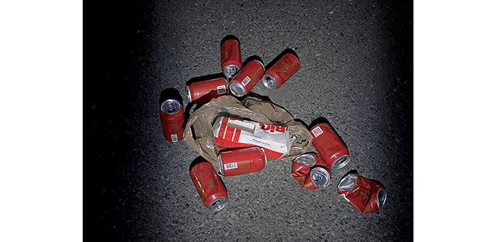 On 116th Ave NE we found ten empty 14 Hands wine cans.
