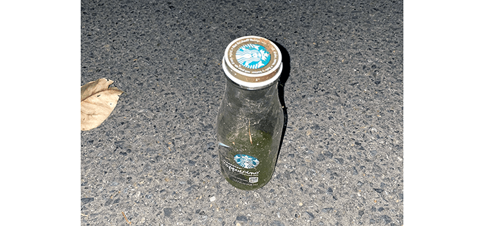 At a bus stop on Brickyard Road, we found a pregnancy test kit with two used tests. The test requires the person to urinate on the test device, the female, not the male. She must then wait for the results, and she did it twice. So, did she run across the street to the Jacksons station and buy a beer to help her out? Was she pregnant? Did she miss the bus? After we got home, Janet checked the results that showed she was not pregnant, which in our estimation was a good thing for the gene pool. But we still don’t know if she missed the bus.