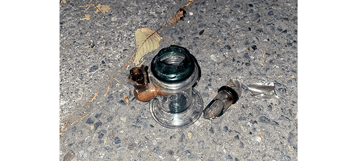 It was a nice small one and would be a welcome addition to our collection of found bongs, but it was broken. So it was a nice addition to our trashcan.