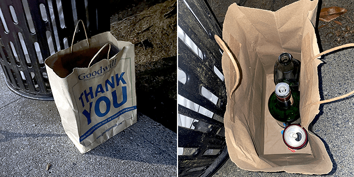 Inside were empty gin and vermouth bottles. They must make a terrible martini with equal parts gin and vermouth. Would that be a vermouth martini? And we didn’t realize that Goodwill sold used alcohol.